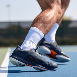 Inspirada, projetada e testada por Roger Federer, a RF 01 proporciona maior velocidade, golpes de fundo dentro da quadra, transições e reações mais rápidas na rede.