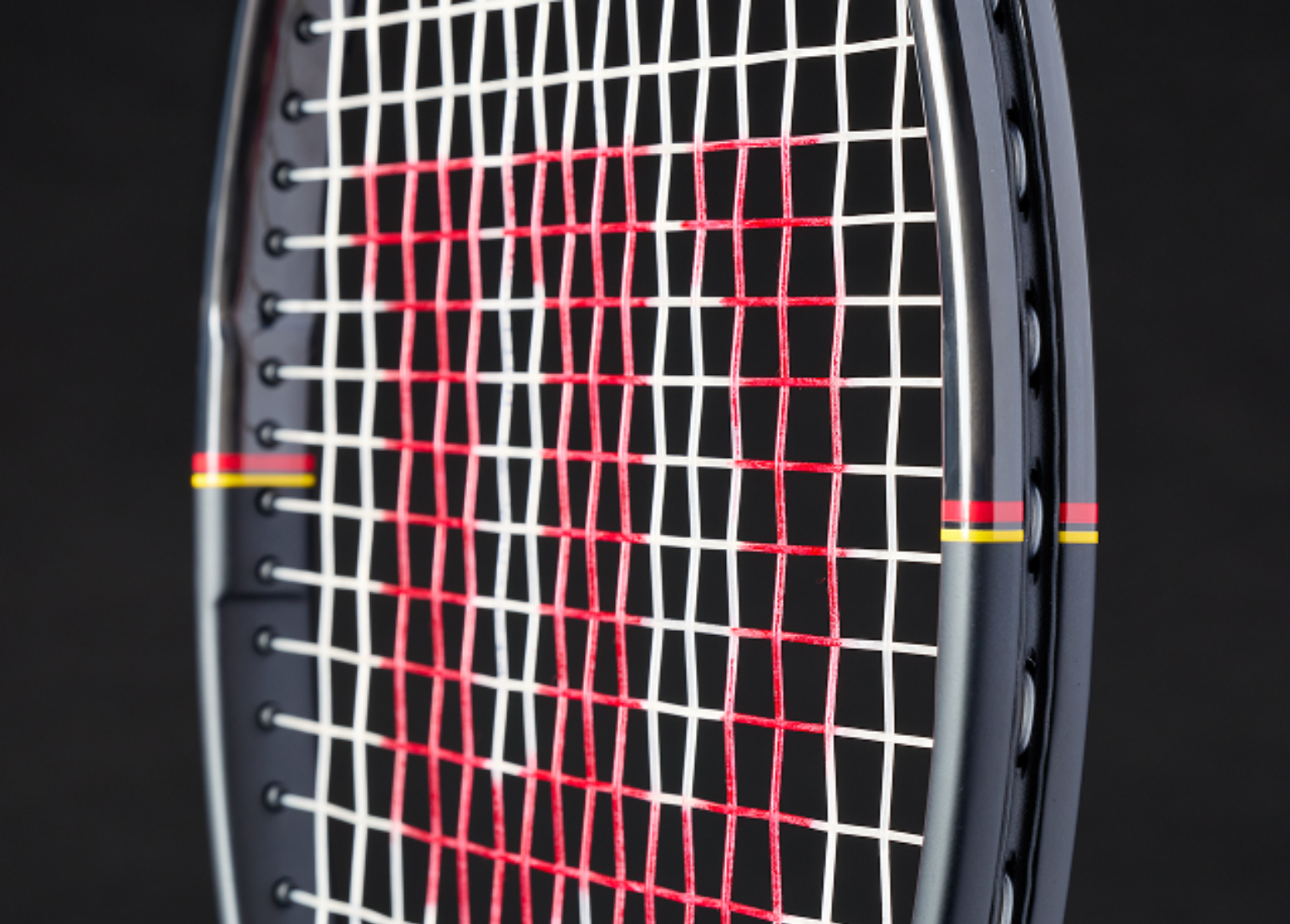 O espaçamento mais estreito entre as cordas verticais e horizontais no centro do encordoamento aumenta a precisão em toda a face da raquete, proporcionando uma sensação mais confiável e consistente ao golpear a bola.